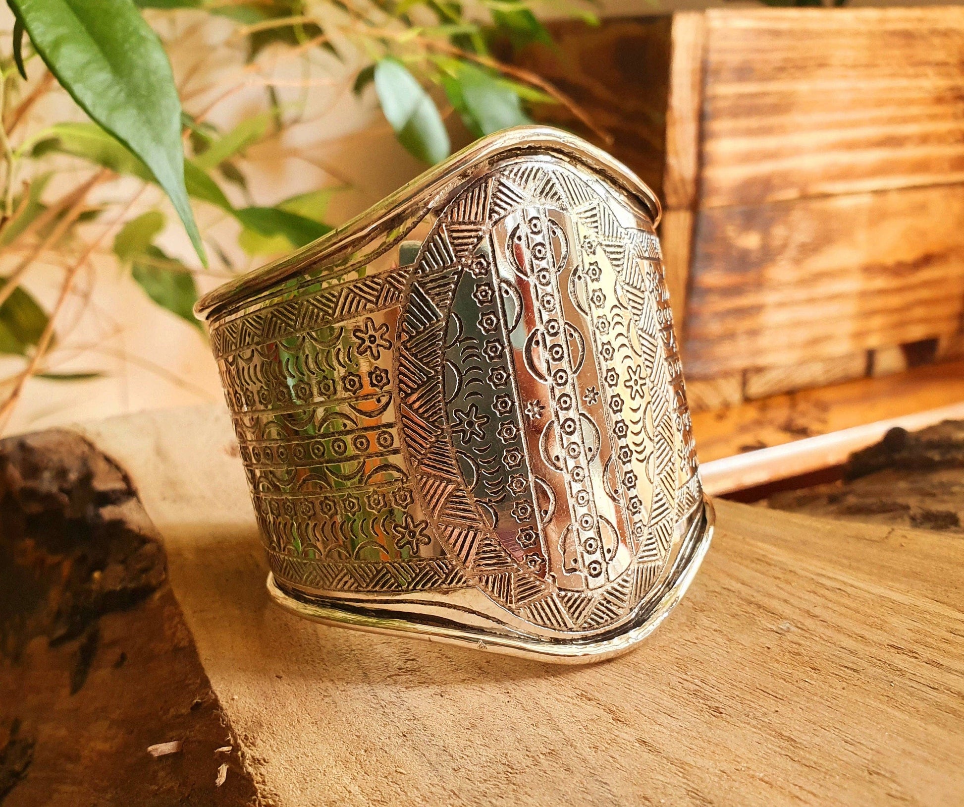 Aztec Silver Cuff Bracelet / Tribal / Inca