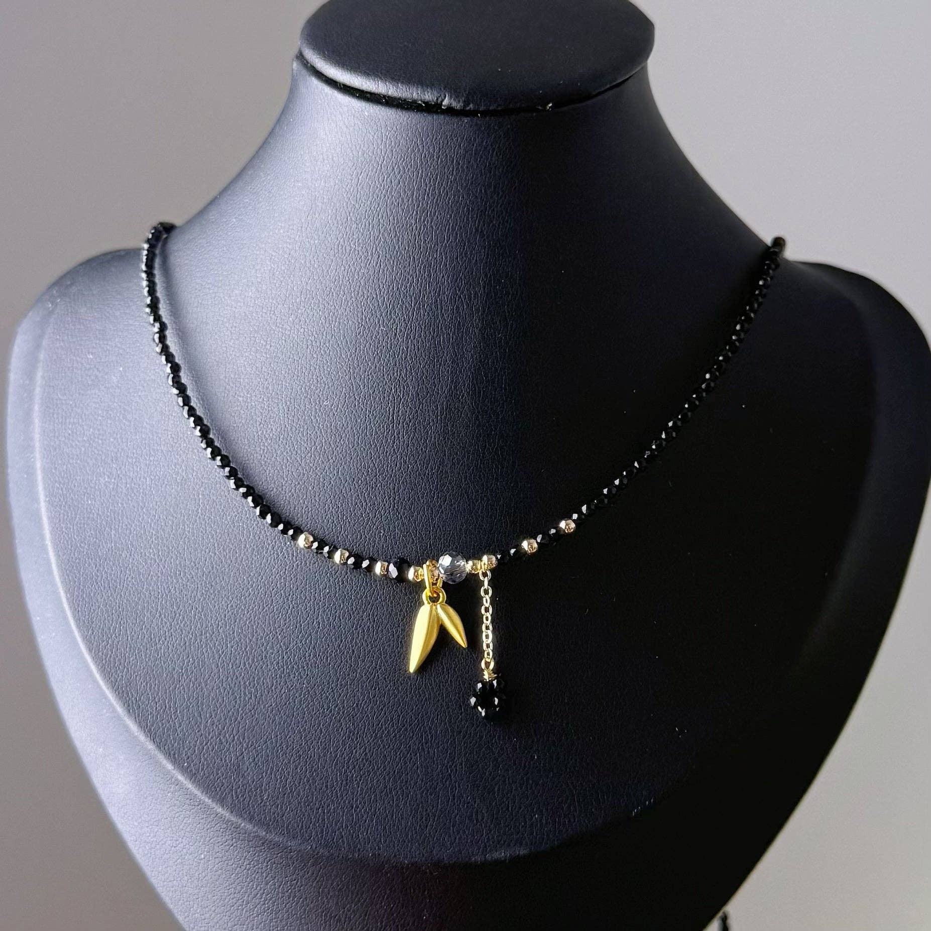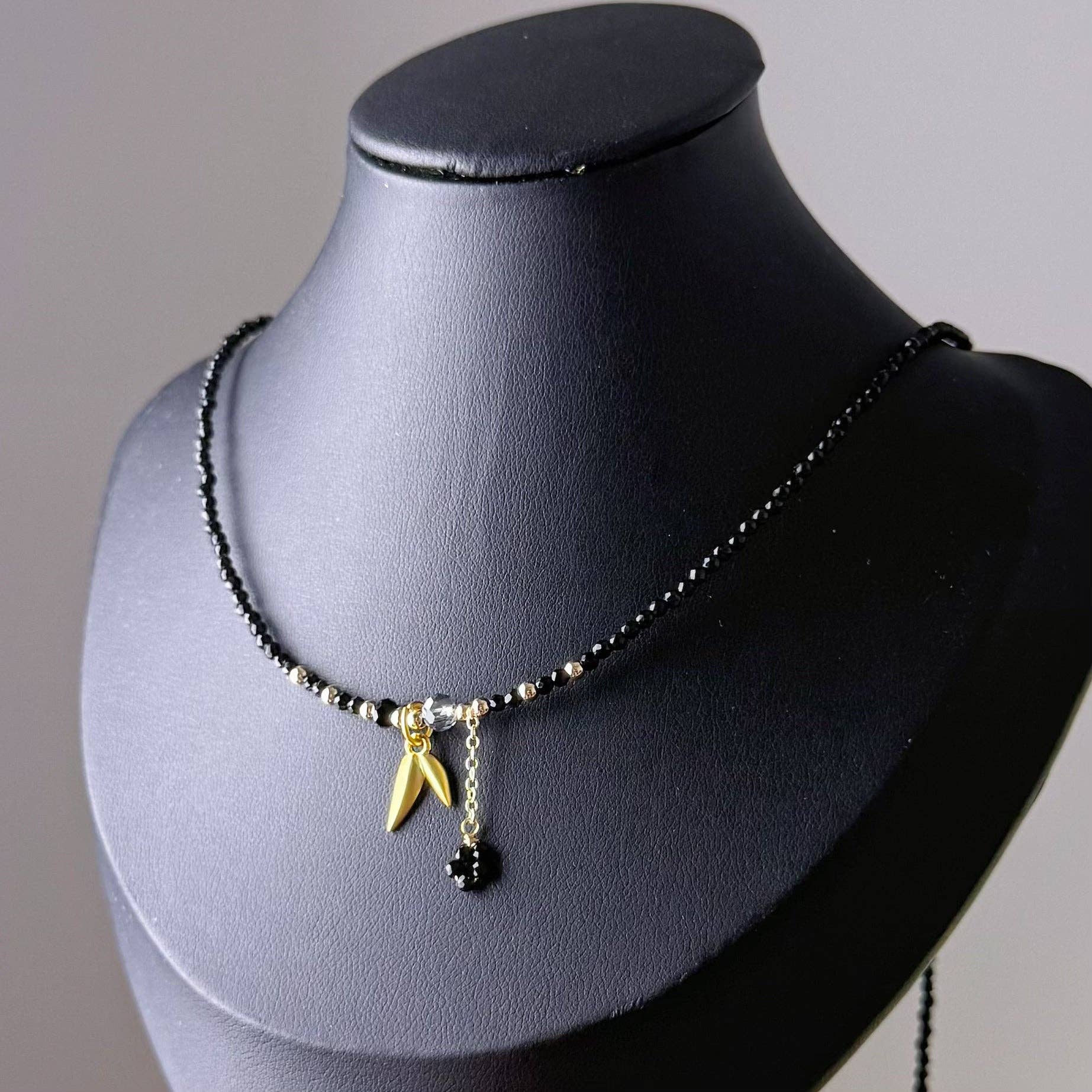 Handmade Black Spinel Crystal Necklace Multi Strap Bracelet