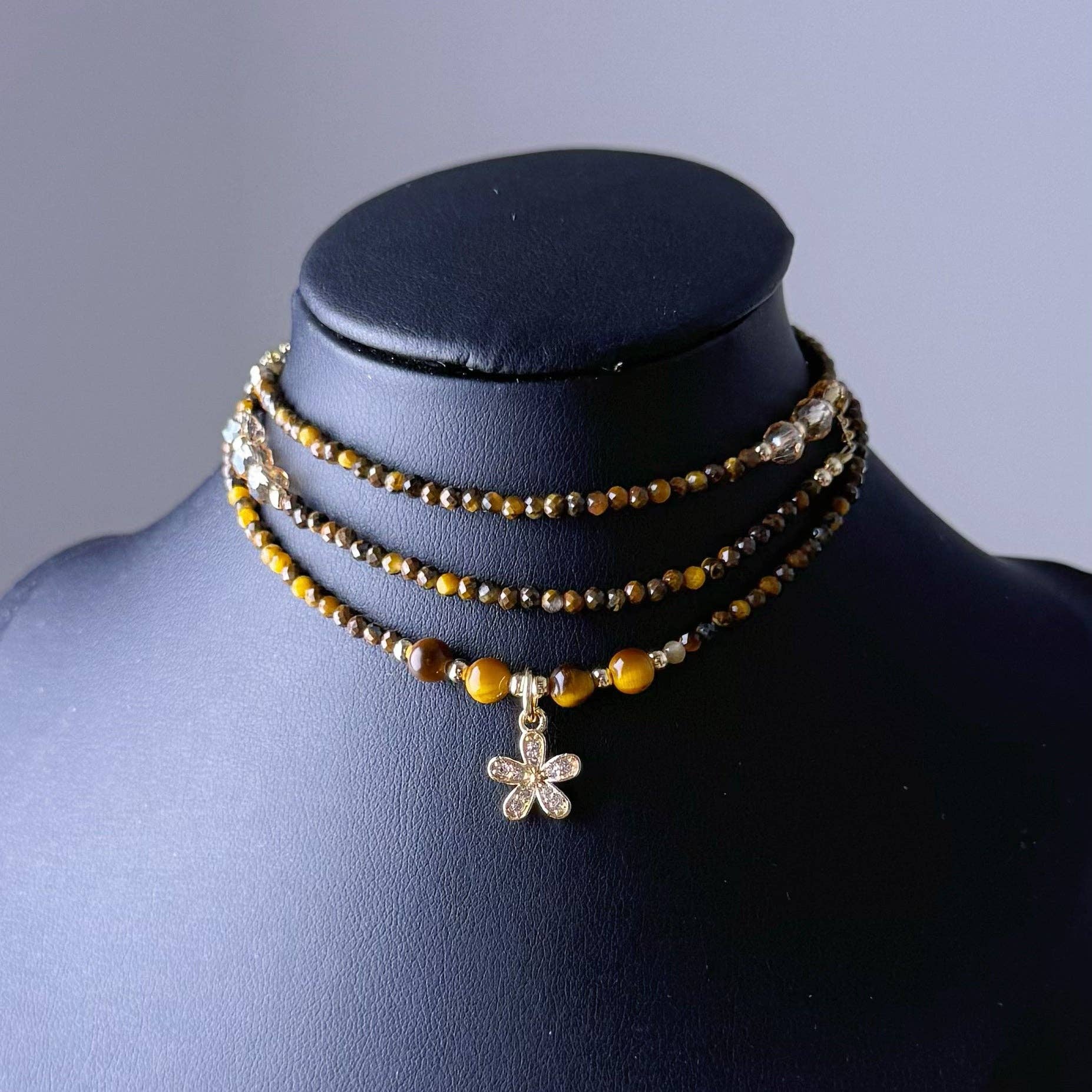 Handmade Tiger's Eye Crystal Necklace Multi Strap Bracelet